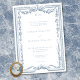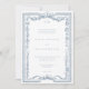 Announce your special day with an elegant traditional wedding invitation featuring a detailed, vintage-style engraving border of florals and ribbons in soft dusty blue. Perfect for a formal ceremony or an affair with a classic, timeless aesthetic. This refined design offers an opulent look. Created by Simply Farmhouse Press.