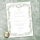 Announce your special day with an elegant traditional wedding invitation featuring a delicate, vintage-style border of florals and ribbons in soft sage green. Perfect for a formal ceremony or an affair with a classic, timeless aesthetic. This refined design offers an opulent look. Created by Simply Farmhouse Press.