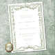 Announce your special day with an elegant traditional wedding invitation featuring a detailed, vintage-style engraving border of florals and ribbons in soft sage green. Perfect for a formal ceremony or an affair with a classic, timeless aesthetic. This refined design offers an opulent look. Created by Simply Farmhouse Press.