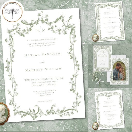 Classic Elegant Sage Green Floral Frame WeddingDesignad av Kathe Santillo