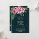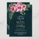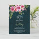 Klassisk emerald grönt, burgundi och rosa ros blommigt, rustik mörk saga moody tematisk bröllopsinbjudan