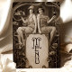 This exquisite Art Nouveau-inspired wedding menu card brings a touch of vintage elegance to any event. The front features a photo of two graceful, classically styled figures holding a feast and a glass, symbolizing abundance and celebration. Delicate lines and floral motifs in soft shades of teal, peach, and cream frame the design, adding a whimsical charm. The back showcases a beautifully presented menu with a refined selection of courses. Perfect for weddings, formal dinners, or vintage-themed gatherings, this menu card adds an artistic and sophisticated ambiance to your table settings.