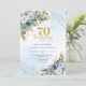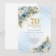 Celebrate a milestone in style with this elegant 70th birthday invitation featuring watercolor dusty blue and white flowers, soft eucalyptus greenery, and a shimmering gold frame. Designed in chic boho style with refined script lettering, this floral invitation is perfect for a classy 70th birthday party. Ideal for formal, garden, or luxury celebrations with a timeless, sophisticated touch.