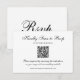 These elegant and modern wedding RSVP response cards feature a black and white classic layout and formal calligraphy, and has a scannable QR code so that guests can respond online at your wedding website. The back of the card is solid white, with the word "Rsvp" in black as a decorative element.