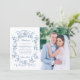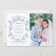 This classic and romantic design is a modern adaptation of an historic French etched frame of dusty blue intertwined roses, flowers, foliage and ribbons ca 1770 by Rococo designer Pierre Ranson. It includes customizable text fields, a photo template and a complementary floral graphic on the back.