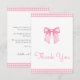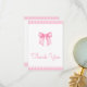 Express your gratitude with our Classic Pink Watercolor Bow Thank You Card, designed to celebrate the arrival of your little one with elegance and modern charm. This beautifully crafted card features a cute watercolor bow paired with elegant script, and a gingham frame - a simple, elegant, and contemporary classic aesthetic. Feminine touches and a coquette element make it a perfect choice for a stylish girl baby shower. Personalize with your thoughtful message on the back of the card and add your name.