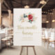 Denna klassiska gyllene blomljus brinner skylt är perfekt för en rustik bröllop. Designen har akvarell vit, vinröd och guld blommor och bär med grönt lövverk arrangerade i eleganta buketter.