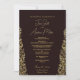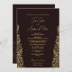 Brölloportet har en elegant och lyxig utformning med en djup maronbakgrund och en gyllene Damaskus-stil mönster längs sidorna. Guld blomstrar ram på ett vackert sätt, ge det som ett royal och klassiskt utseende. Texten i mitten, skriven i en blandning av modern kalligrafi och serif typsnitt, är helt och hållet anpassade - alla namn, data, platser och meddelanden kan redigeras till kostym, paret och tillfälle. Den gyllene texten kompletterar det ornerade gräns och skapar ett sammanhängande och regalt utseende. På det hela taget betonar kortet sofistikering med rik färg som kontrast till mörk maron och skuggande guld, medan det Damaskus-inspirerade inslag tillför en aning tradition och tidlös skönhet.