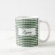 Bring a touch of timeless, rustic charm to your morning coffee or afternoon tea! This personalized mug features a vibrant green and white gingham (checkered) pattern that evokes feelings of cozy farmhouse kitchens and sunny summer picnics.