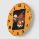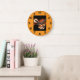 Keep track of time while adding a festive, spooky element to your wall with this custom clock featuring the Halloween night illustration. The clock face showcases the chilling scene of the glowing jack-o'-lantern and the haunted mansion under the full moon. Perfect for decorating a game room, den, kitchen, or office during the October season. This functional timepiece also makes a fantastic year-round gift for collectors of unique horror and gothic home decor items.