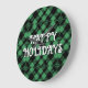 Classic Holiday Green Checkered Pattern Custom Stor Klocka