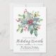 En klassisk grönt, kullig och röd bär arrangemanga toppar denna julinbjudan till Helgdag. Kalligrafi ge är en festlig stämning.