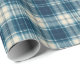 Elegant and traditional wrapping paper featuring a seamless plaid pattern in deep indigo blue and creamy beige. The design uses intersecting lines of varying thickness to create a timeless tartan aesthetic, perfect for holiday gifts, birthdays, or any occasion that calls for a cozy, heritage, or rustic presentation. This paper provides a sophisticated, non-seasonal look suitable for both men's and women's gifts.