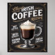 Add a touch of rustic charm to your home bar or kitchen with this classic Irish Coffee recipe illustration. Designed with a stylish dark vintage aesthetic, this elegant typography graphic perfectly highlights the essential ingredients: hot coffee, Irish whiskey, brown sugar, and fresh cream. It serves as both a beautiful piece of cafe-style wall art and a practical guide for crafting the perfect warm cocktail. Whether you are entertaining guests or enjoying a cozy evening, this timeless design brings the authentic coffeehouse experience right into your home.