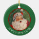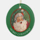 På den här roligten är julprydnaden ett underbart vintage bild i Jultomten. Du hör nästan "Ho ho's"! Bilden ramas in i rött och placeras på en Helgdag grönt gräns som säger "GOD JUL" i vitt. Baksidan av dekorationen har samma bild, men texten säger "Gott nytt år". All text är anpassade, så du kan anpassa den om du vill. Det är roligt att fira julen på det gammaldags sättet!