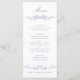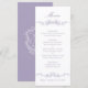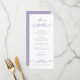 Elegant lavender floral border wedding menu with a floral crest and monograms on the back.