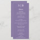 Berätta för dina gäster vad som står på menyn för ditt bröllopsmottagande med hjälp av den klassiska lavender bröllop temed-menyn.