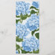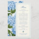 Classic Light Blue Stripes Wedding Menu with elegant typography, blue pinstriped background and blue hydrangea pattern on the back.
