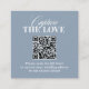 These elegant, old money style wedding enclosure cards for your reception or tucked inside your invitations are an easy way for your guests to upload their photos to your shared wedding album. These dusty blue, scannable QR code share the love cards feature a mix of classic white text and modern calligraphy that says "Capture the Love," for a classy and minimalist design perfect for your timeless, formal wedding.