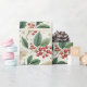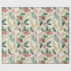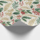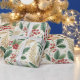 Elegant Christmas holly pattern in festive shades of green, red, and gold, ideal for creating beautifully wrapped gifts.