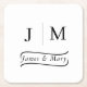 Classic Monogram Wedding Calligraphy line Square Paper Coaster.
