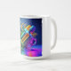 A colorful abstract sculpture covers this unique mug.