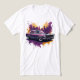 Wear your love for vintage cars with this bold t-shirt design showcasing a 1960s Mustang in a colorful city backdrop. Perfect for car show weekends or casual streetwear.