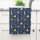 Den klassiska nautiska konstruktionen har Guld nautiskt inslag, fyr, fraktens hjul, ankare och segelbåt, inramad av guld-rep med nautisk knop mot en marin blå bakgrund.