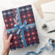 Classic Navy Red Plaid Snowflakes Christmas Presentpapper