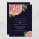 Classic Navy & Rosa Peony Bröllop Inbjudningar