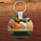 Bring elegance and tradition into your daily life with this keychain featuring a beautifully arranged set of classic nigiri sushi. Tuna, salmon, shrimp, egg, uni, and more—each piece captured in vivid detail atop a wooden board. Perfect for sushi lovers and fans of minimalist Japanese design.
