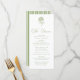 Present your menu details with this classic olive green hydrangea wedding menu, thoughtfully designed to complement garden and estate-inspired wedding décor. The design features a hand-drawn hydrangea illustration at the top, followed by “The Menu” in elegant olive green calligraphy script. Menu selections are displayed below in refined serif lettering for a balanced layout. A coordinating olive green and white striped pattern appears on the back, adding a subtle heritage-inspired accent. Perfect for outdoor ceremonies, garden weddings, and romantic receptions, this wedding menu card adds a natural yet polished detail to your table settings.