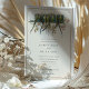 Det här bröllopet inbjuder presenter till en tidlös design som fångar både vintagens estetik och naturens serenskönhet. På framsidan finns en sofistikerad khaki-bakgrund som avgränsas av invecklad hörndesign i ett kompletterande skåp och som skapar ett förfinat ram för den centrala teckningen. Två papegojor, som har oliv grönt, gyllene gulter och marinblå präglade av en spray med blommigtar i , persikofärgade och elfenben. Den åtföljande marinblå ovalen är subtilt monogrammad och tillför en personlig. I motsatt riktning växer en harmonisk scen upp med många-parroter på en perch, deras levande plumage ställs mot en symponi av samma mjuka, blommigt palett. Inbjudan är avslutad med elegant och prydnadsdetaljer, skapar det vara ett perfekt meddelande för ett pars kommande barn.