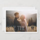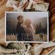 Announce your upcoming wedding with these elegant save the date cards by Redwood and Vine Design Co, featuring a horizontal photo with a thick white border and a text overlay in classic, oversized serif lettering. Customize the back with additional text and a custom QR code leading to your wedding website for more information.