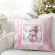 Classic Pink Snowman Winter Scene Kids Gift Pillow Kudde