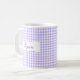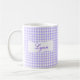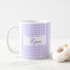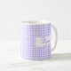Bring a touch of timeless, rustic charm to your morning coffee or afternoon tea! This personalized mug features a vibrant purple and white gingham (checkered) pattern that evokes feelings of cozy farmhouse kitchens and sunny summer picnics.