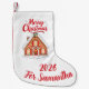 Featuring the cheerful "Merry Christmas" message and customizable name and year in a vibrant red script, this stocking is the epitome of holiday charm. The pure white canvas makes the colors pop, creating a stunning and classic festive display on any mantel.