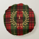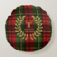 Classic Red Christmas Plaid With Monogram Wreath Rund Kudde