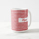 Bring a touch of timeless, rustic charm to your morning coffee or afternoon tea! This personalized mug features a vibrant red and white gingham (checkered) pattern that evokes feelings of cozy farmhouse kitchens and sunny summer picnics.
