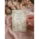 Announce your formal estate union with a romantic neo-classical design featuring a proposal scene and soft botanical accents in a timeless monochrome palette.This design features a highly detailed digital illustration simulating a 3D bas-relief stone carving. The central image depicts a romantic engagement scene where a gentleman kneels to propose to a lady in a flowing gown, set within a classical rotunda temple architecture. The "carved" stone elements are rendered in shades of beige, cream, and warm grey, contrasted by flat-printed pastel pink and peach roses with muted sage green leaves climbing the arched frame. The typography combines an elegant, ornate black calligraphy script for names with a traditional serif font for the details.This is a flat printed image with a Faux Stone Embossed effect, not actual raised material or textured paper.