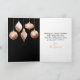Send warm holiday wishes with this sophisticated folded Christmas card featuring five elegant ornaments in rose gold tones. Each ornament showcases a unique design - floral, snowflake, dripping faux glitter, diamond pattern, and stars - against a rich black background with rose gold sparkles. The luxurious palette and refined layout make this card ideal for stylish families, formal greetings, or corporate holiday messages. Perfect for those who love modern elegance with a festive twist.