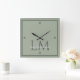 Classic Sage Green Monogram Office Accent Fyrkantig Klocka
