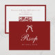 Classic Script Wine Red Coquette Graduation Party RSVP Card. An elegant and minimalistic graduation celebration RSVP card, designed in wine red and white, script lettering, and a custom message and QR code on the back for you to add your website, and allow guests to easily respond online.