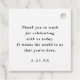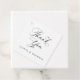 These classic wedding favor tags feature an elegant black and white design with refined calligraphy and traditional script. The simple square format pairs formal typography on the front with a short thank you message on the back, creating a timeless, old money look. Perfect for formal and traditional weddings, these favor tags add a polished finishing touch to your wedding favors.