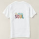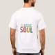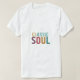 T-shirt har texten "Classic Soul" i en sjudande multifärgad. Föreställ dig "Klassisk" som visas med fet stil och elegant, kanske med rik färg som framkallar en känsla av tidlös stil. "Soul" skulle kunna presenteras i ett kontrasterande men kompletterande färg, med ett mer uttryckligt och snurrande typsnitt, där man pekar på själsmusikens energi och känslor. Den övergripande designen firar den varaktiga kraften och inflytandet från klassisk själsmusik.