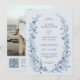 This luxury botanical winter wedding invitation features elegant dusty blue florals framed in a timeless wreath, paired with refined typography for a classic, icy winter aesthetic. The back of the invitation includes space for a personalized photo and a scannable QR code, seamlessly blending traditional elegance with modern convenience. Inspired by vintage botanical artwork and cool winter tones, this sophisticated design is perfect for formal, classic, and upscale winter weddings. Personalize effortlessly to create a polished, heirloom-style invitation that sets the tone for an unforgettable celebration.