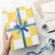 Classic visual yellow checkerboard presentpapper