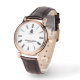Elevate your special moments with this personalized classic brown leather wedding watch, designed for elegance and timeless style. Featuring a rich brown leather strap, golden case, and customizable dial with names and date, this watch makes the perfect gift for weddings, anniversaries, and milestone celebrations.