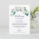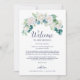 Dessa klassiska vita blommor bröllop välkomnar brev och färdkort är perfekter för ett vår bröllop. Blommigten för elegant har mjukt elfenben och vit ros, peonier och krrysanthemum med beröring av blommor med halvkullblått vattenfärg och grönt bladverk. På kortets framsida finns ett välkommet brev och på kortets baksida finns en rutt i bröllop. Dessa anteckningar är perfekt för destinationsbröllop och hotellgästväskor.