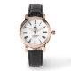 Experience timeless sophistication with this white and gold personalized watch, designed for those who appreciate classic beauty and refinement. The crisp white dial with black Roman numerals exudes elegance, while the rose gold bezel and white crocodile-textured leather strap complete the luxurious aesthetic. The custom monogram crest and personalized name detail make this watch a meaningful and stylish statement piece.